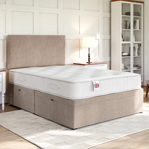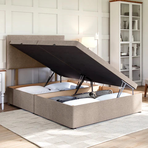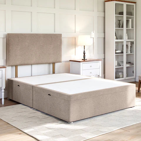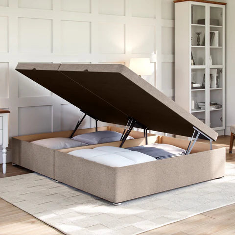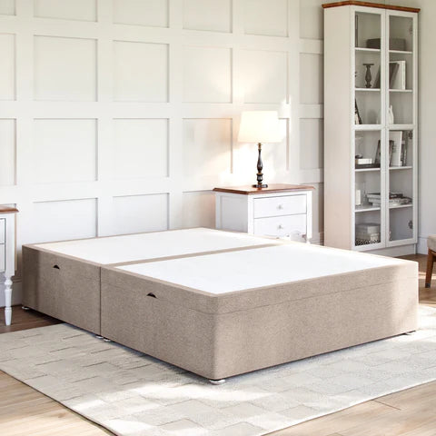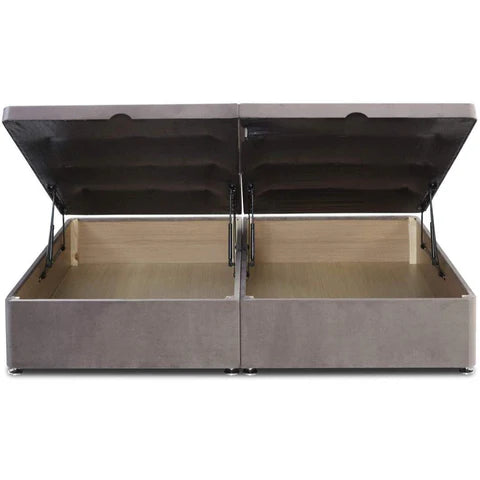 The Grandeur Side Lift Ottoman Divan Bed Base has 4x more under bed storage than a standard divan base with drawers, making it a fantastic space saving solution for any bedroom. Featuring 600 newton gas lift pistons which are positioned on each side of the base, it can be easily lifted/closed and will support up to 75kg weight, allowing for heavy mattresses.