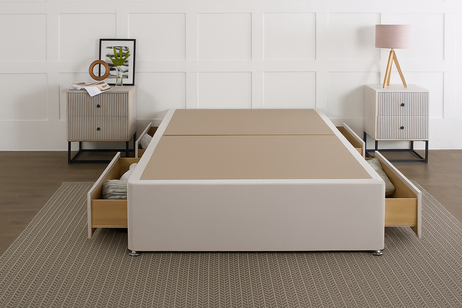 The divan base is also available with an excellent choice of drawer storage options, making it a great space saving solution for any bedroom.