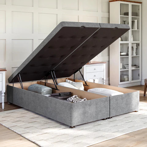 If space is at a premium, this fantastic end lifting ottoman provides up to 4x more under bed storage than a standard divan base with drawers.